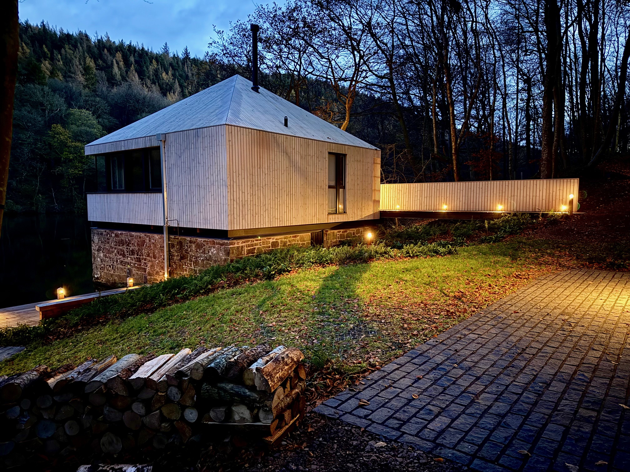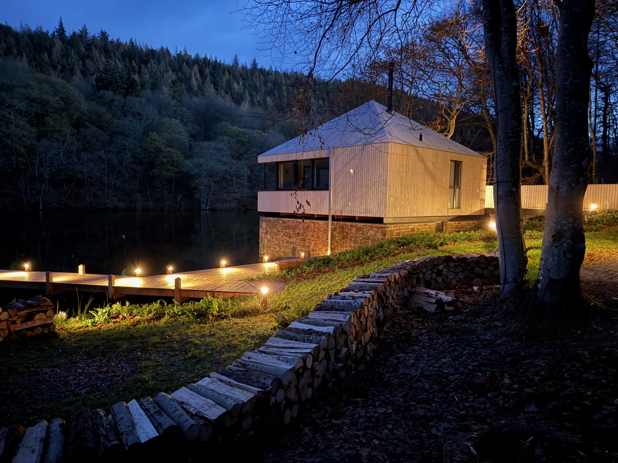This Victorian boat house sits on the edge of a lake in East Lothian, surrounded by woodland and wildlife.  The structure was redesigned by architects WT Architecture and painstakingly rebuilt and remodelled by building contractor PJM Contracts.  The end result is a stunning, award-winning building which provides studio space alongside a timber-clad bothy offering waterside accommodation and storage space for kayaks.